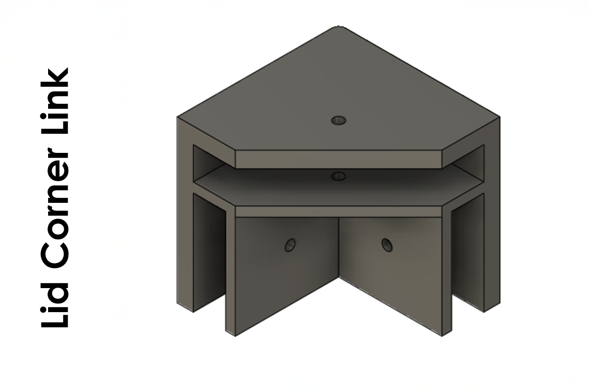 Top Corner Link är utrustad med Lid Mount, vilket gör det möjligt att montera ett lock direkt i hörnen – perfekt för slutna transportlådor eller skyddade förpackningar.