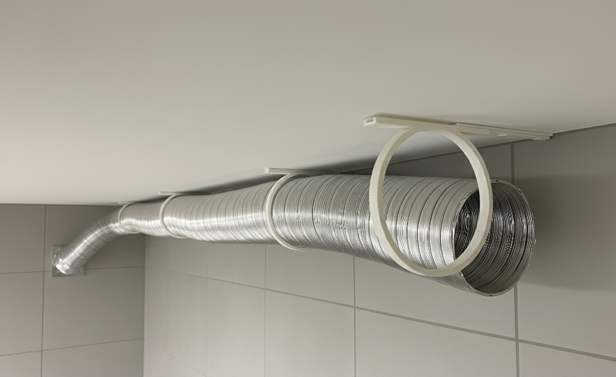 Denna hållare är designad för att ge en ren och professionell montering av ventilationsrör eller kanaler i både tak och vägg.
